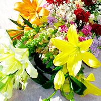 花売店には地元農家の皆さんが丹誠込めた花々を種類豊富に取り揃えています。自分で摘んだ花やお選び頂いた花を全国に宅配いたします。